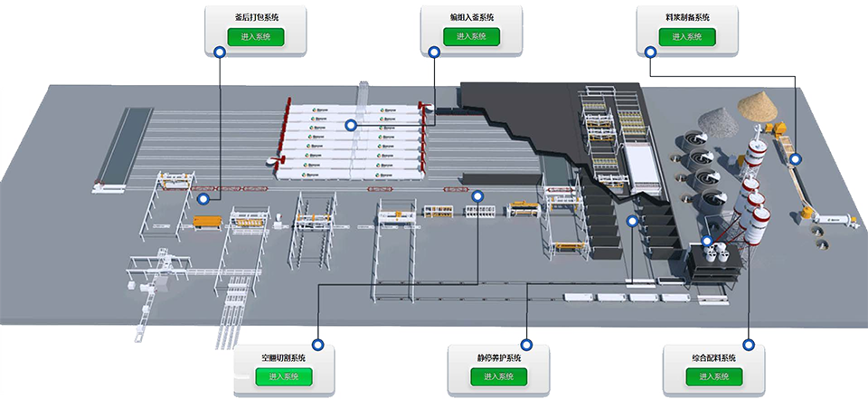 料漿、膠結(jié)料、石膏和鋁粉都分別通過相應(yīng)自動計量稱計量,后在攪拌機內(nèi)高速攪拌,澆注到模箱后進行氣泡梳理。整個體系由 PLC 系統(tǒng)進行自動控制,保證工序的精確和高效。